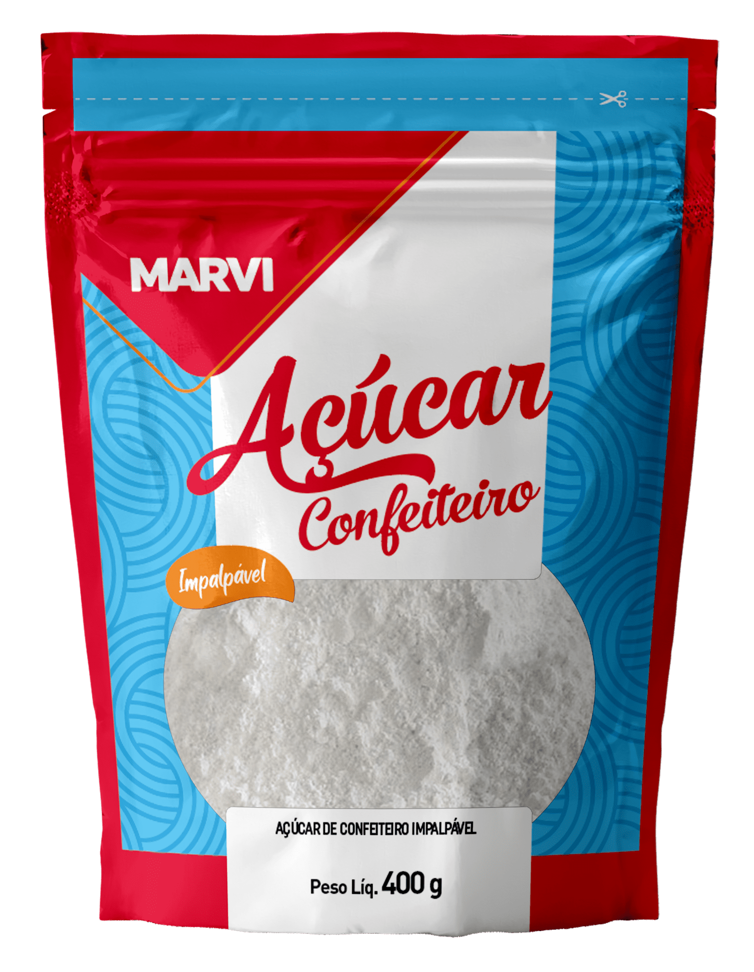O Açúcar de Confeiteiro Marvi pode ser usado na produção de cremes de confeiteiro, glacês, suspiros, bolos, doces, biscoitos, tortas, coberturas, recheios e outros produtos de confeitaria. É um produto obtido através da mistura de açúcar impalpável com amido de milho.