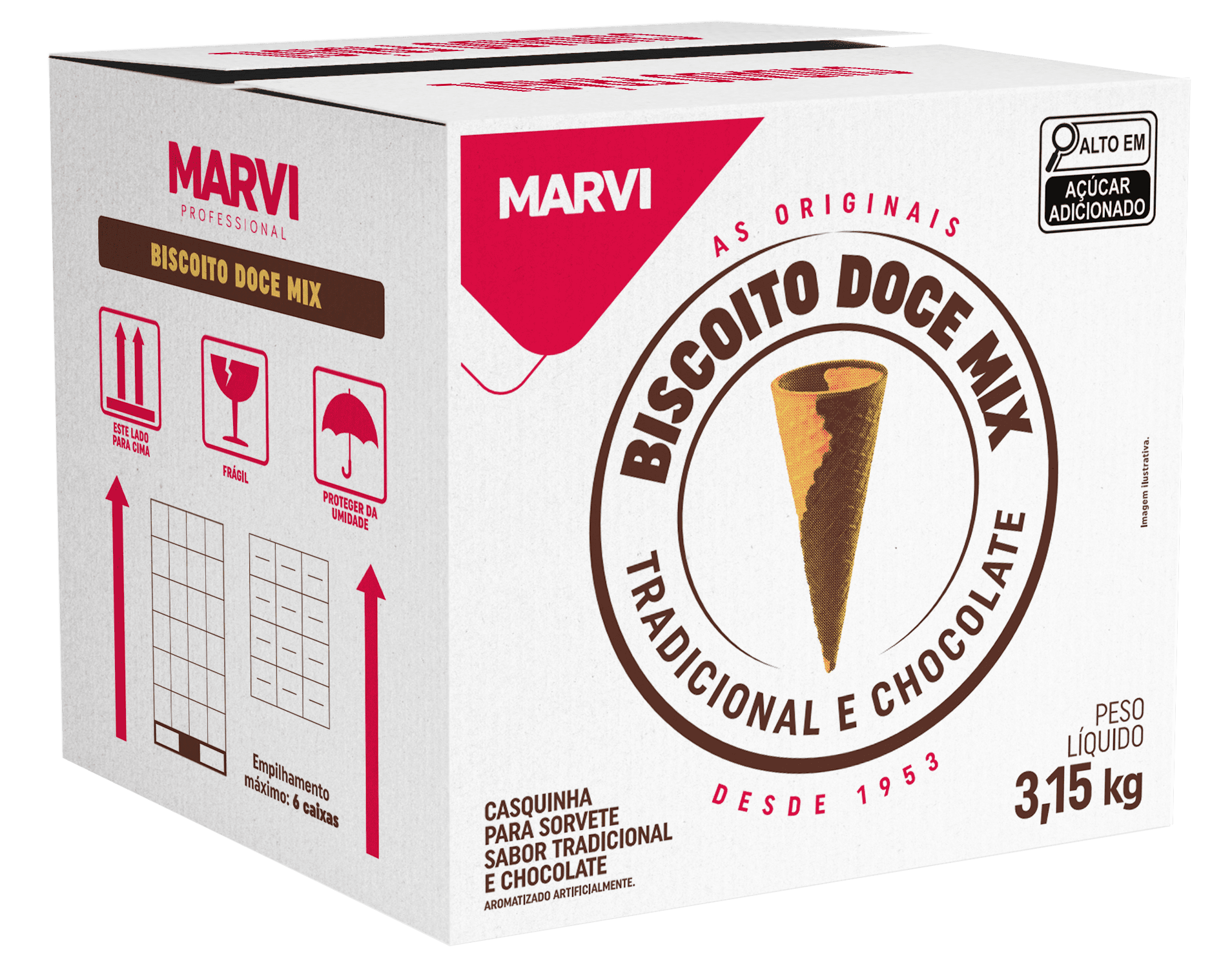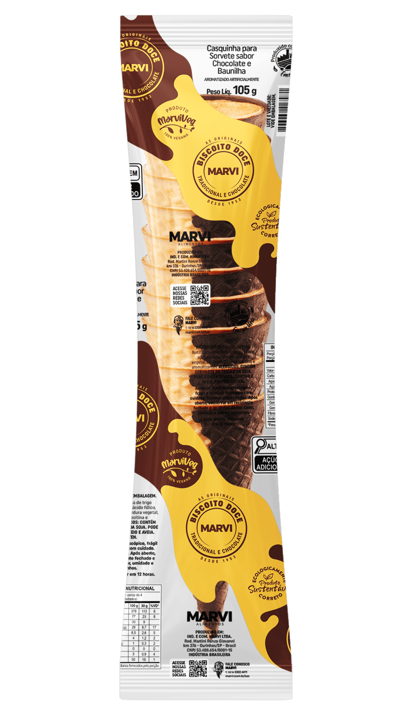 Casquinha Biscoito Doce MIX Baunilha e Chocolate Marvi super crocante e deliciosa.