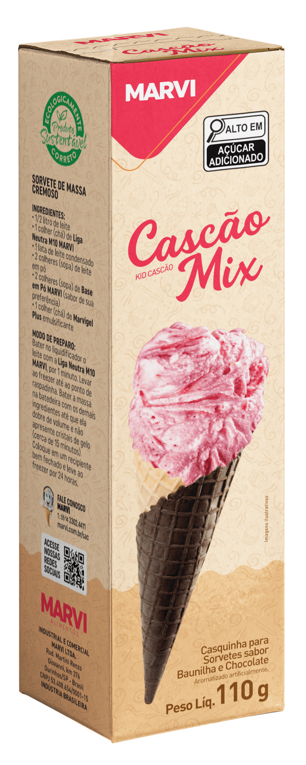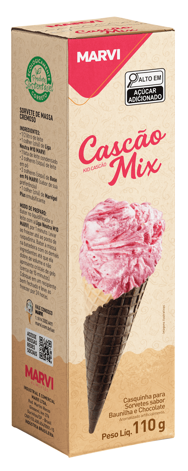 O Cascão Mix Marvi é uma deliciosa e crocante opção para incrementar seu sorvete ou para criar sobremesas surpreendentes.