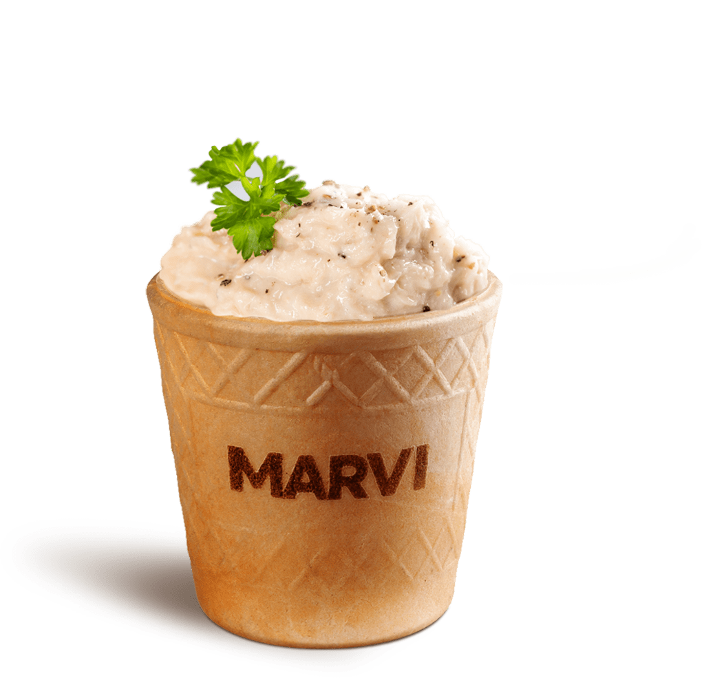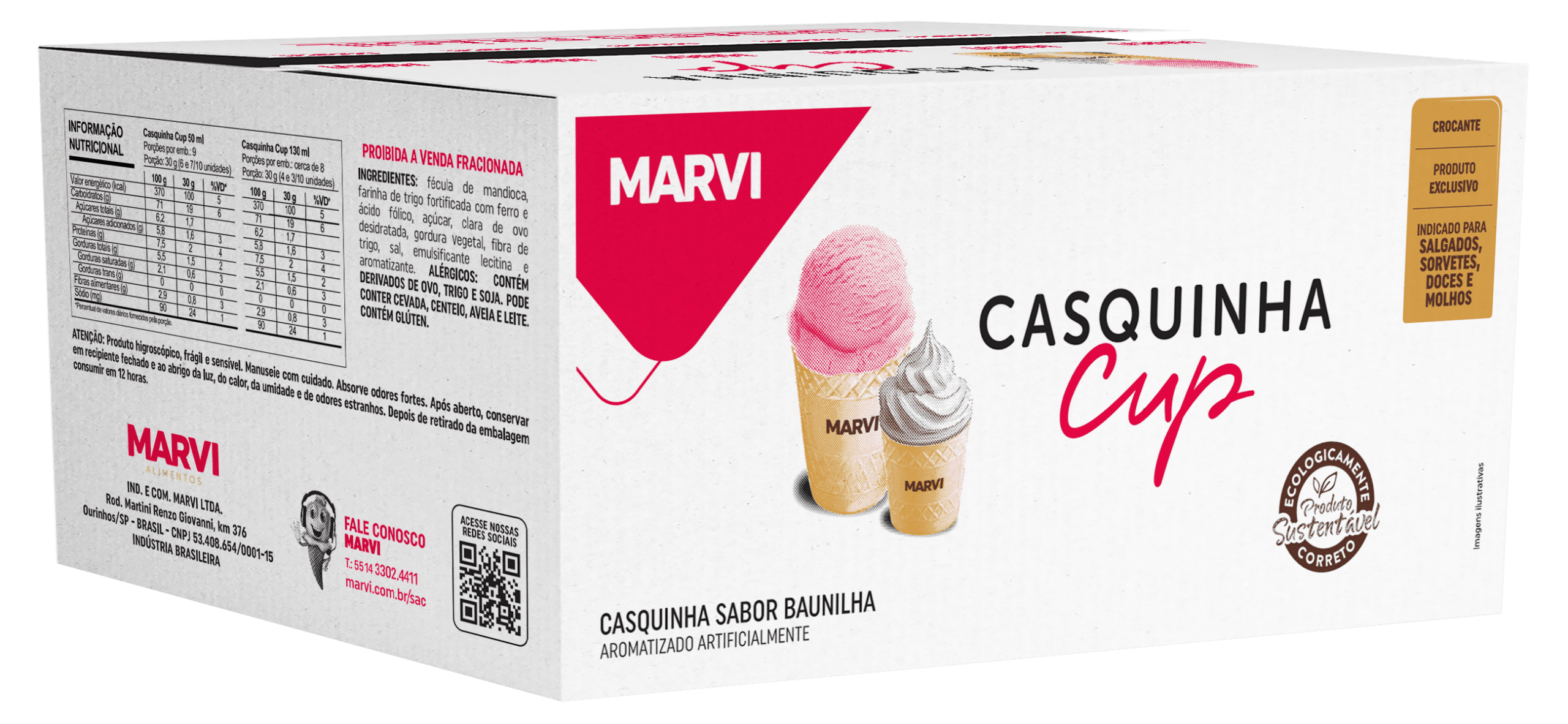 A Casquinha Cup 50 ml é uma casquinha de sorvete com formato de copinho comestível criada pela Marvi. Ela combina a textura crocante típica das casquinhas com um sabor mais neutro. Esse copinho de 50 ml foi pensado para substituir pequenos recipientes descartáveis, permitindo que você consuma bebidas ou sobremesas e, depois, coma o próprio copinho como um complemento saboroso.