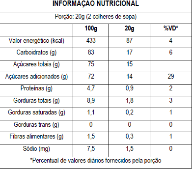 Sabor: característico de açúcar caramelado com amendoim
