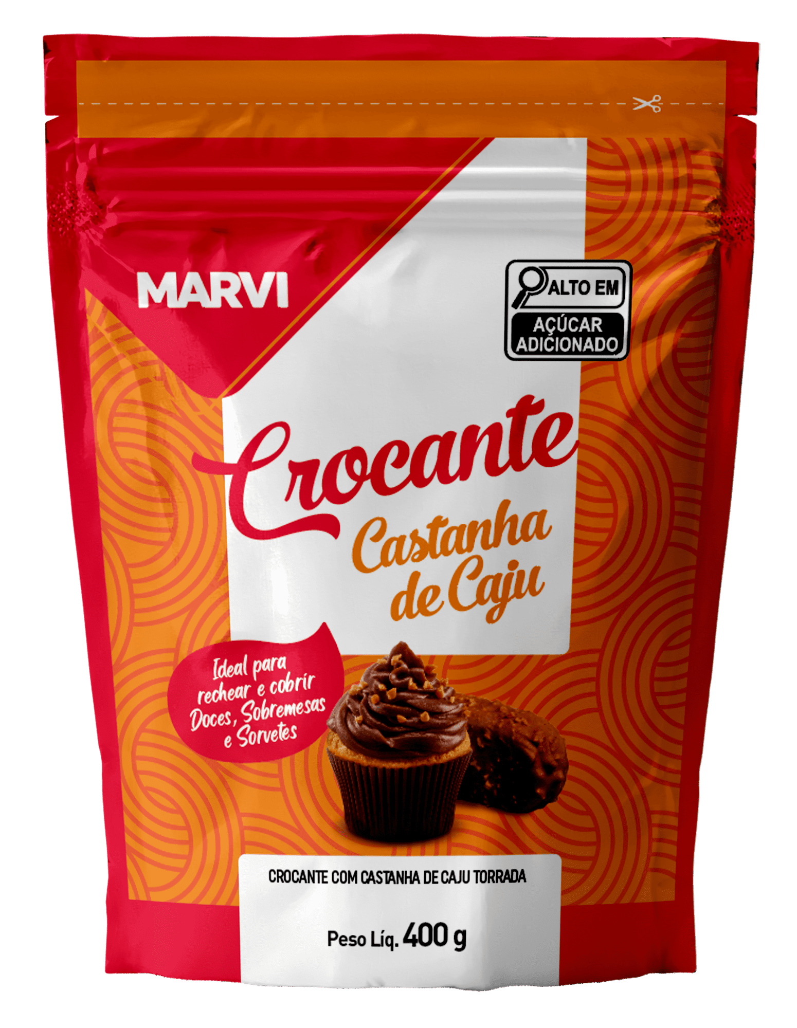 O crocante de castanha de caju, além do uso tradicional na fabricação de sorvetes “sabor crocante”, poderá também ser utilizado em recheios e/ou